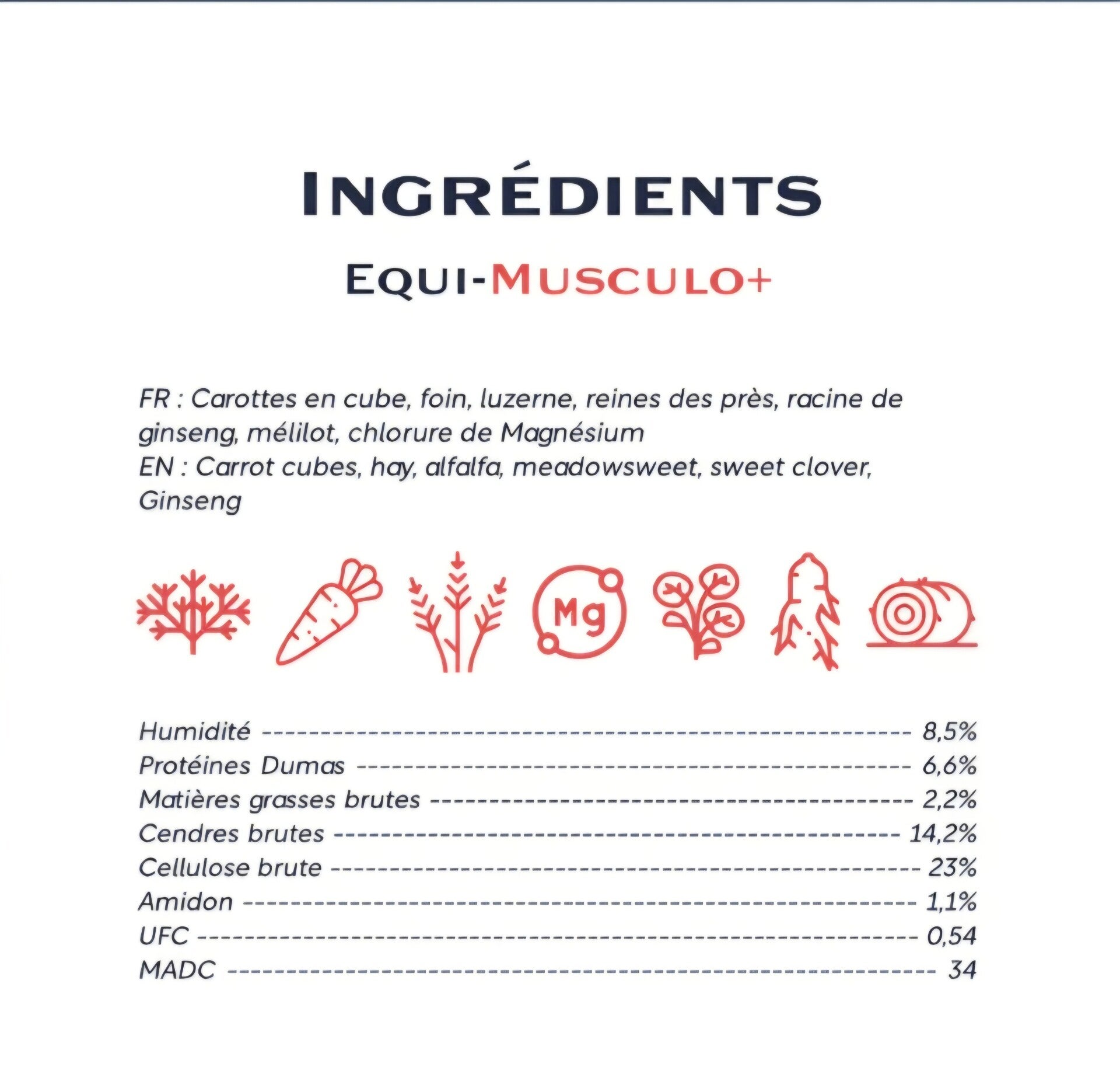 Cheval de sport en entrainement intensif ; cheval convalescent après une myosite ou des crampes ; cheval manquant de tonicité musculaire.