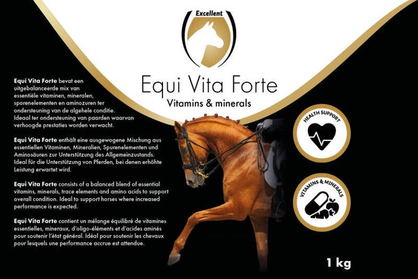 Equi Vita Forte se compose d'un mélange équilibré de vitamines essentielles, d'oligo-éléments et d'acides aminés pour soutenir la condition générale.