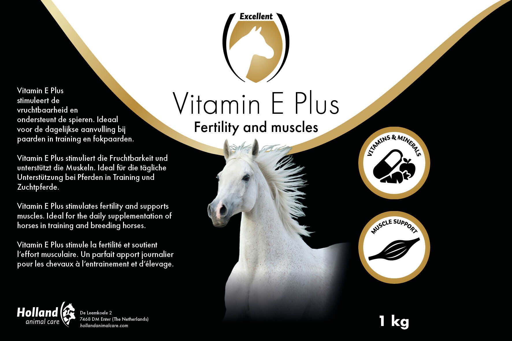 Vitamin E Plus est un complément équilibré contenant de la vitamine E, du sélénium et de la lysine. Ce sont des nutriments importants pour le soutien des muscles, de la résistance et de la fertilité.