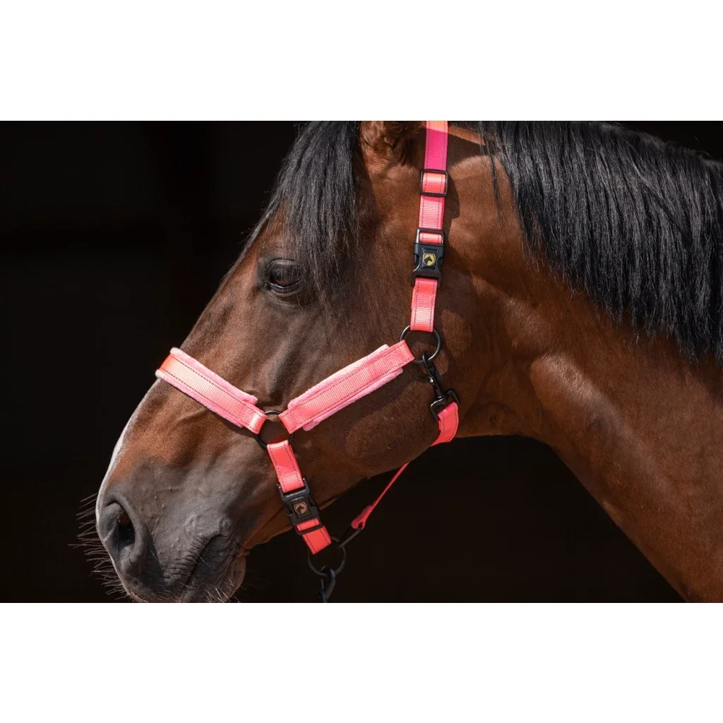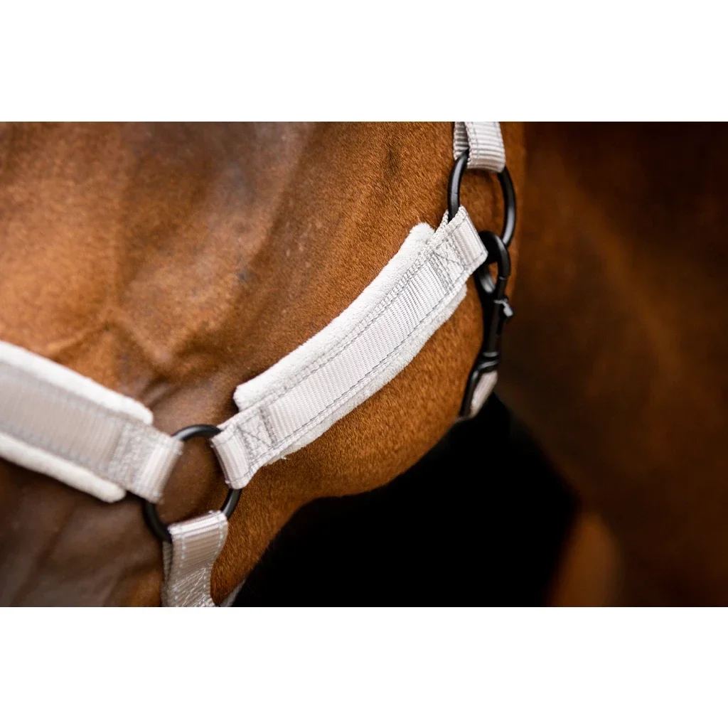 Si vous recherchez la qualité, le confort et la commodité, optez pour le licol Superior d'Excellent. Ce licol de qualité est fabriqué en nylon tissé très serré, ce qui le rend très doux, flexible et durable, et il est équipé de détails réfléchissants. Le licol est ainsi très visible dans l'obscurité. De plus, la muserolle et les têtières sont en polaire, ce qui évite au licol de frotter. Ce licol convient également parfaitement aux jeunes chevaux ou aux chevaux qui sont craintifs de la tête, grâce à la fermeture à boucle cliquable de la muserolle et de la têtière. Le licol est ainsi facile à mettre et à enlever. En outre, le système de réglage facile à utiliser permet d'optimiser rapidement la coupe du licol.