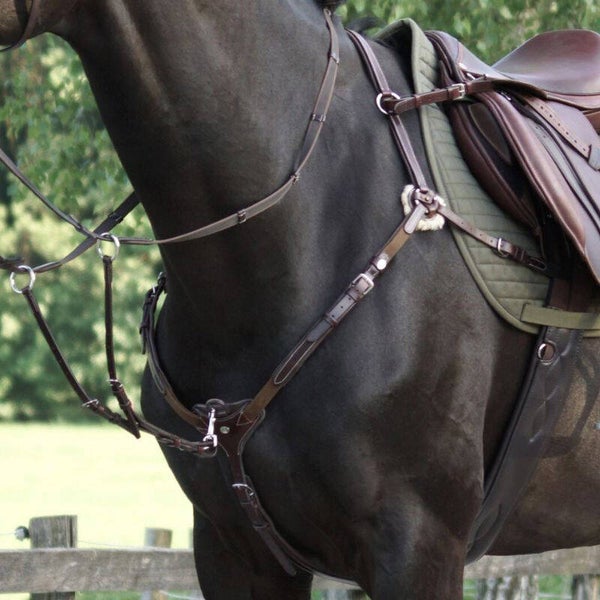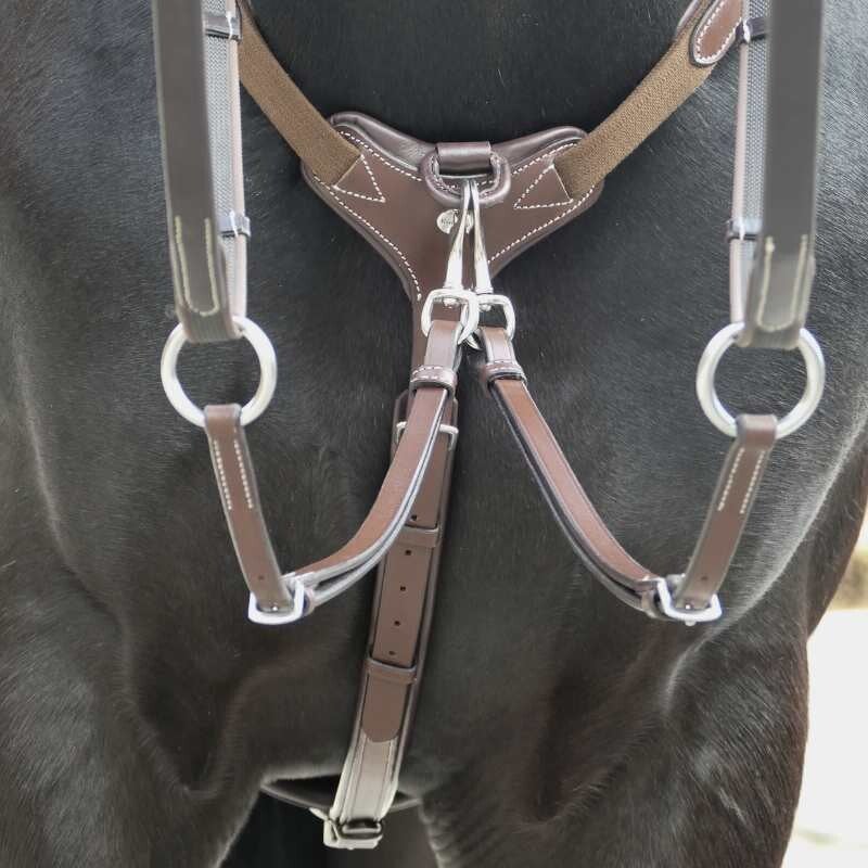 - Sangle de poitrine rigide, réglable à l'avant du poitrail
