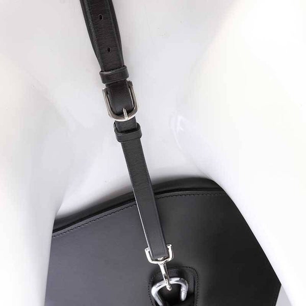 - Fixation de la sangle inférieure avec boucle en cuir ou mousqueton amovible