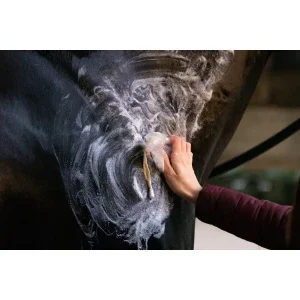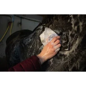 Ensuite, il suffit de masser la barre de shampooing Hi Gloss pour qu'elle pénètre dans l'ensemble du corps du cheval.