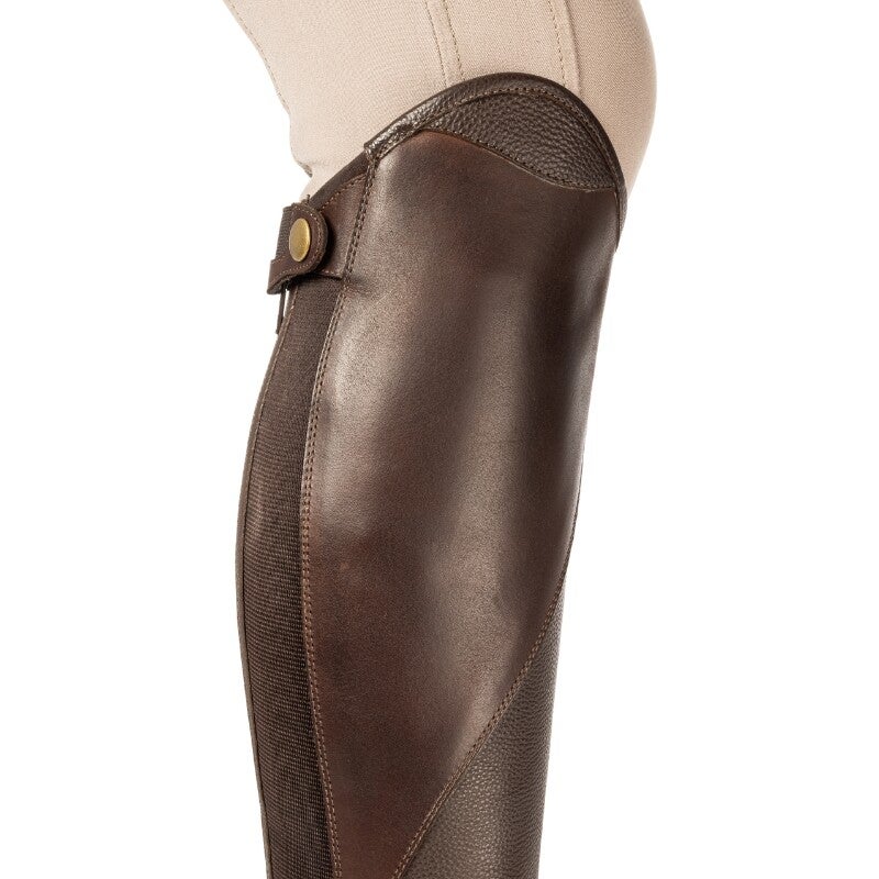 Le cuir souple utilisé à l'intérieur et autour de la cheville épouse parfaitement la jambe et prévient les plis douloureux et les points de pression. À l'intérieur du mollet, un cuir huilé et adhérent assure une meilleure tenue sur la selle. Une couche de cuir supplémentaire à l'intérieur protège le mollet des frottements et renforce la durabilité.