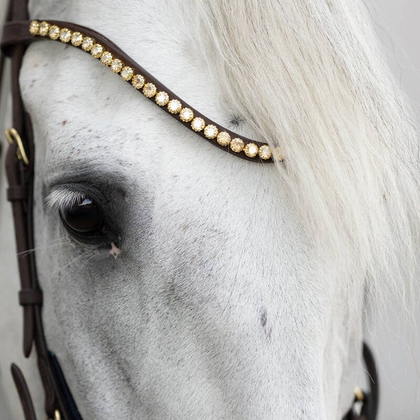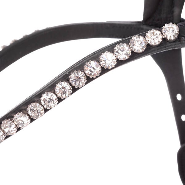 • Frontal étroit et incurvé avec de gros strass (noir : pierres argentées, marron : pierres dorées)