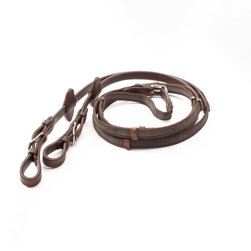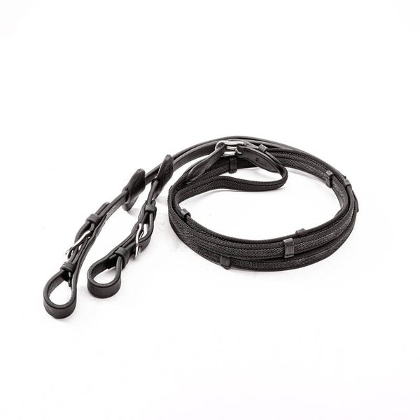 - Comprend des rênes étroites caoutchoutées (16 mm) avec 5 arrêts.