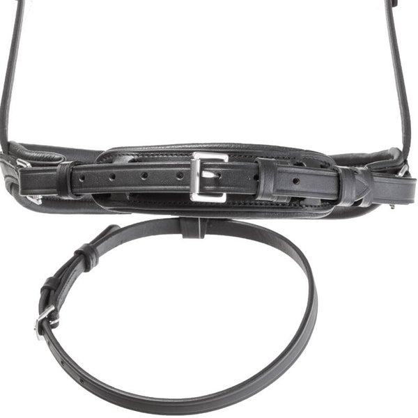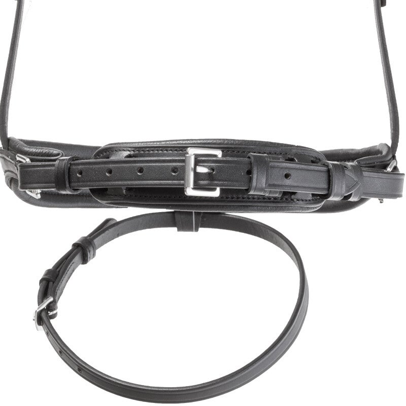 Muserolle en cuir suédoise extra-large et découpe généreuse au niveau du mors.