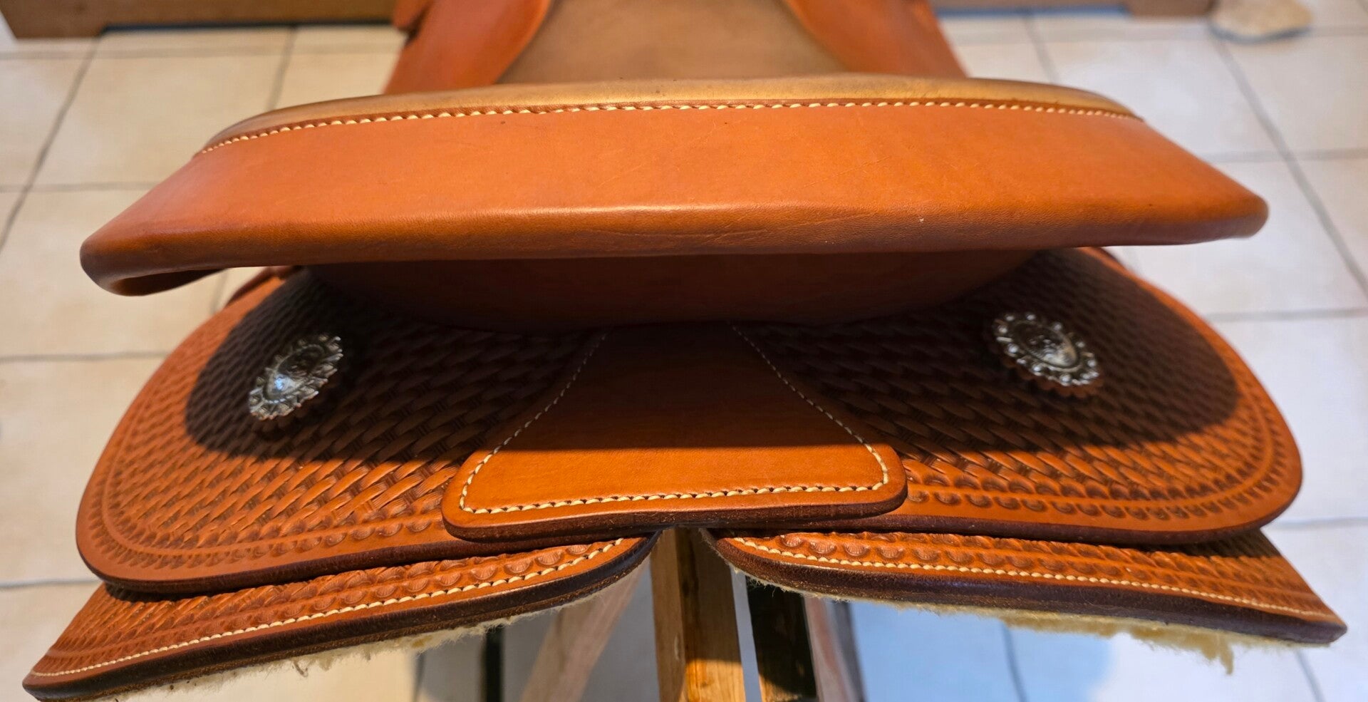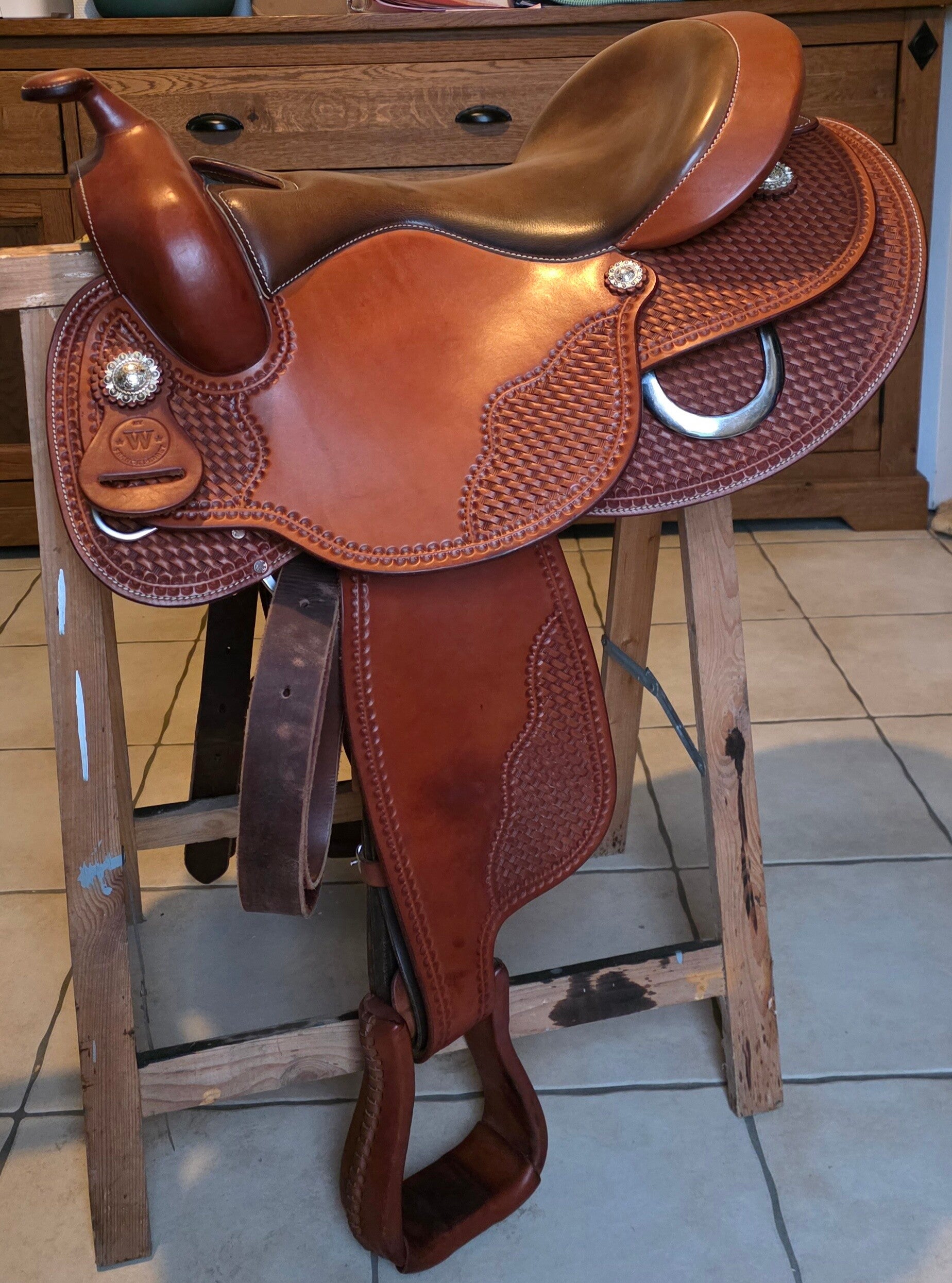 Découvrez une selle western de 2022 que vous ne trouverez plus dans cette couleur de siège, bien entretenue, avec très peu de défauts d'usure.