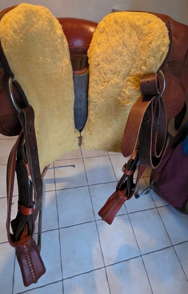 - Son assise en cuir souple, plus large que les selles anglaises et ses panneaux rembourrés, habillés de fausse fourrure, vous garantissent un confort inégalé lors de vos balades.