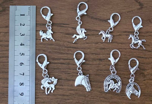 8 modèles de pièces pour porte-clés Vintage cheval et licorne argent.