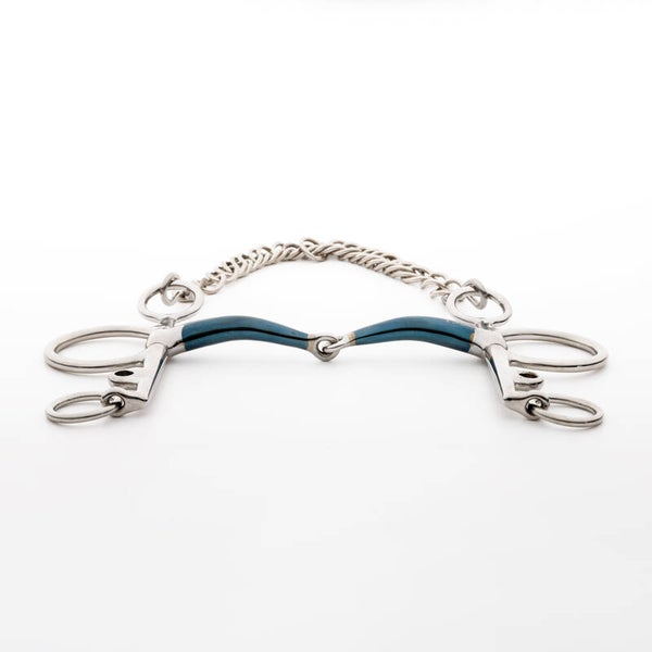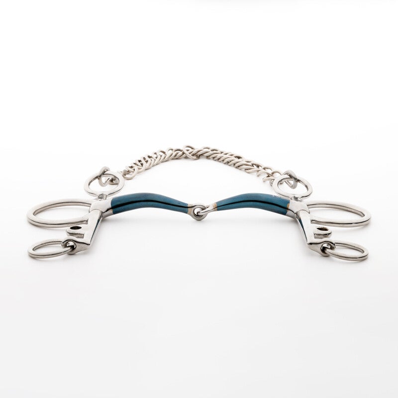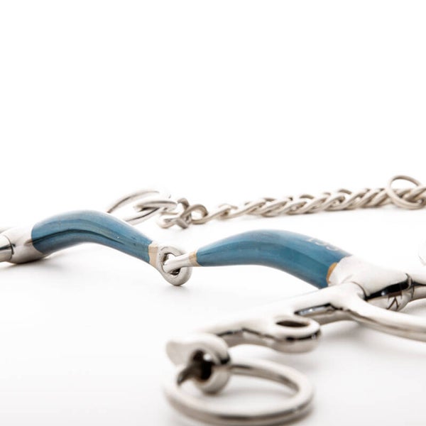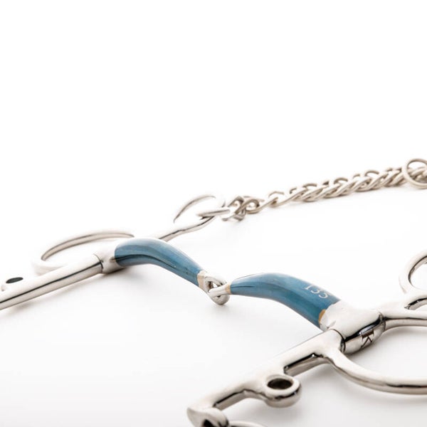 Le fer doux est un matériau qui prend un léger goût sucré au contact de la salive. Sa surface commence à rouiller légèrement, ce qui favorise la production de mousse et améliore ainsi l’acceptation du mors. Sur les mors à double articulation, nous utilisons des inserts en cuivre, qui ont un goût plus doux dès le départ.