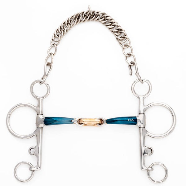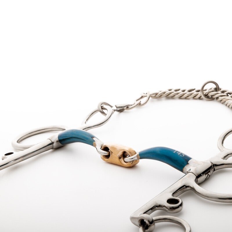 Le fer doux développe un léger goût sucré au contact de la salive. Sa surface commence à rouiller légèrement, ce qui favorise la production de mousse et améliore l’acceptation du mors. Pour les mors à double articulation, nous utilisons des inserts en cuivre, qui ont un goût plus sucré dès le départ.
