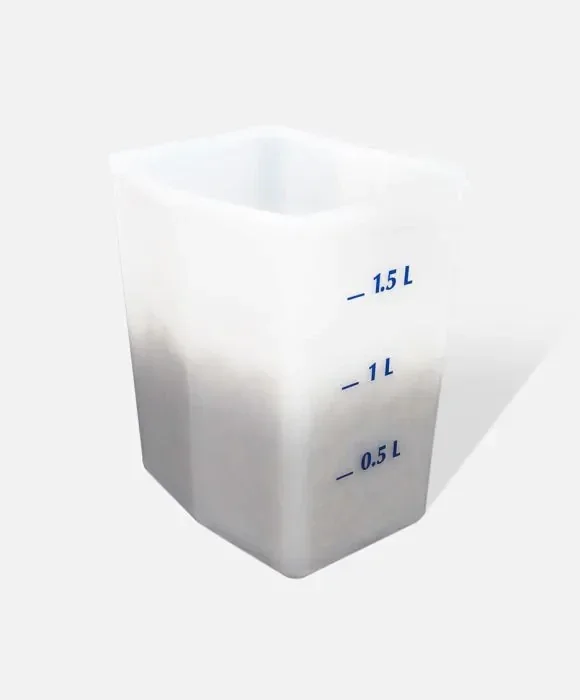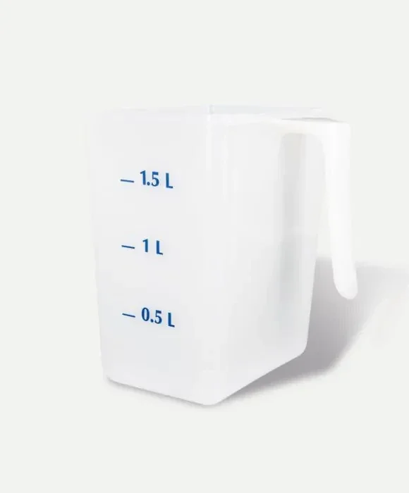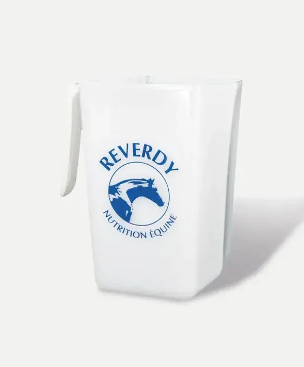 Mesure à grains Reverdy transparente et graduée d'un volume de 2L. Logo Reverdy.Idéal pour faciliter la distribution de la ration.