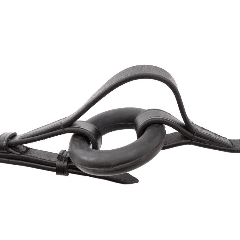 Les rênes latérales avec anneau en caoutchouc offrent un contact légèrement plus doux avec la bouche du cheval. L'anneau élastique crée une petite zone d'étirement, permettant au cheval de se déplacer légèrement vers l'avant. La longueur des rênes latérales est optimale lorsque le nez du cheval est vertical ou presque vertical, au niveau de la pointe de l'épaule. Elles limitent également les mouvements latéraux de l'encolure. Ces aides à l'entraînement présentent l'avantage d'apporter un soutien latéral et d'empêcher le cheval d'échapper facilement au mors (prévenant ainsi les torticolis) ou de tordre sa mâchoire (provoquant une malocclusion).