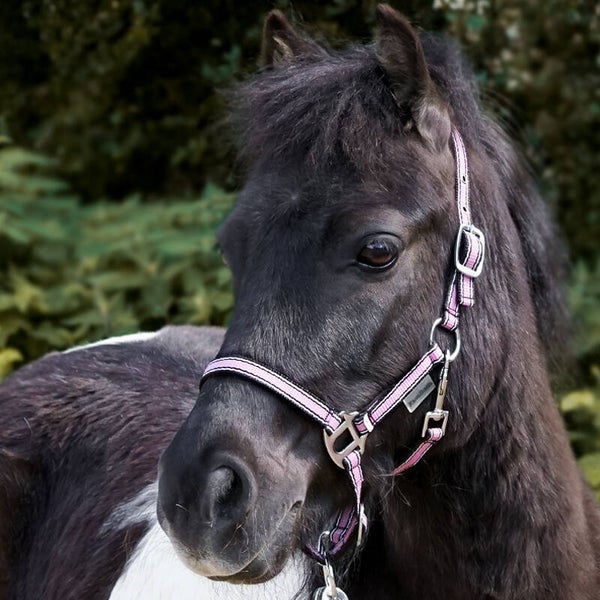 Licol pour poney Shetland « Shorty » disponible en deux tailles et en sangle de 2 cm de large. Pour un ajustement parfait, le licol est réglable des deux côtés, au niveau de la nuque et de la muserolle. Les boucles sont argentées.
