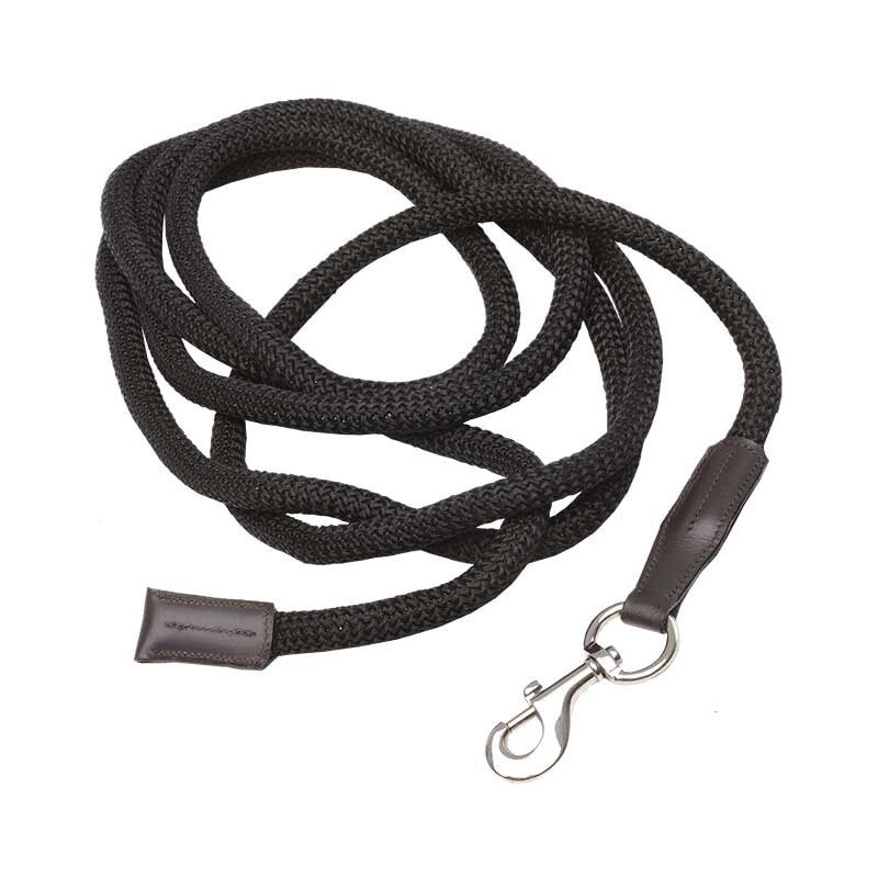 Longe avec mousqueton, idéale pour le travail à pied.Longueur : 4 m.Couleurs/accessoires : marron-noir/argent, cognac-bleu marine/argent, marron-vert/laiton.