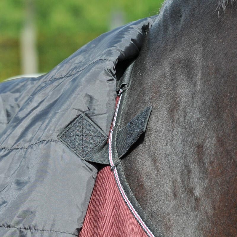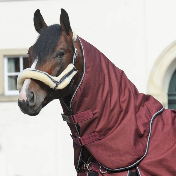 Une protection d'encolure est utilisée pendant les mois les plus froids, lorsque l'encolure du cheval, en plus du corps, a besoin d'être protégée du froid et de l'humidité. Ceci est particulièrement important pour les chevaux tondus. L'encolure du cheval est très sensible et doit être protégée du froid et de l'humidité au même titre que le reste de son corps. Une protection d'encolure est particulièrement importante en cas de pluie pour empêcher l'eau de pénétrer dans la couverture au niveau de l'encolure.