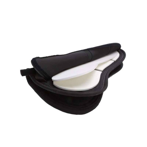 Sa forme anatomique assure une répartition optimale de la pression, sans bords ni points de pression inconfortables au niveau des genoux du cavalier. Fini les selles qui glissent ! De plus, son rembourrage légèrement plus épais offre une excellente répartition de la pression. Ce tapis sert également de correcteur de selle. Des inserts supplémentaires, permettant de corriger la position de la selle, peuvent être insérés dans les poches situées sous le caoutchouc naturel.