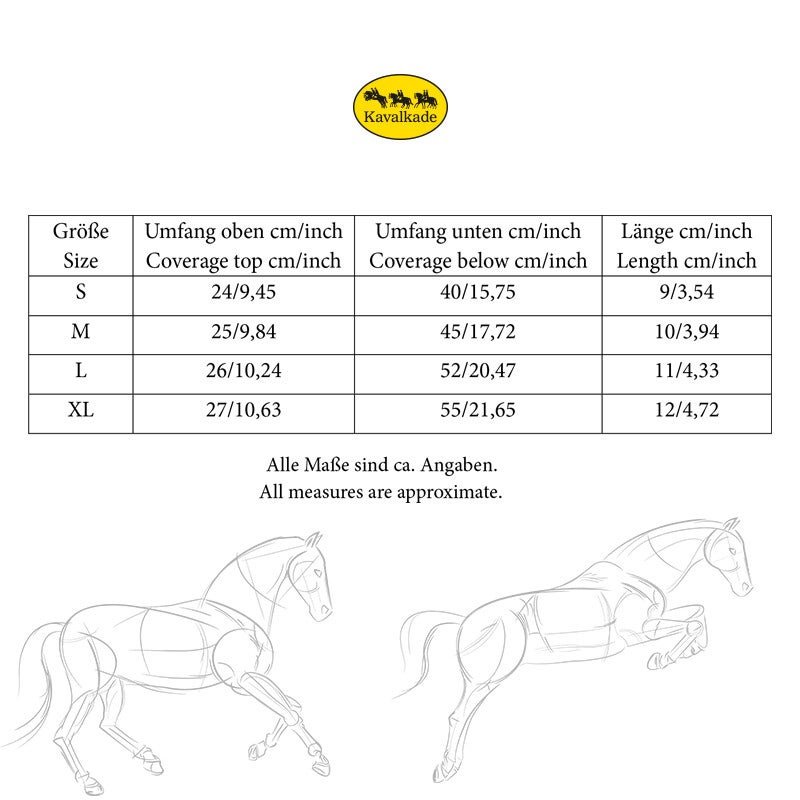 Les robustes bottes de protection « Star » de Kavalkade sont confectionnées en néoprène souple et amortissant à l'intérieur et en cuir synthétique facile d'entretien à l'extérieur. Le talon et le paturon sont délicatement rembourrés par la bordure en néoprène. La finition en cuir verni et le fin liseré pailleté confèrent à ces bottes une allure élégante. Elles sont dotées d'une fermeture Velcro double et résistante.