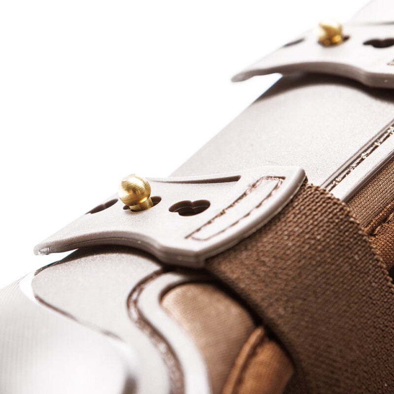 Guêtre rigide fonctionnelle avec fentes d'aération et fermetures à pression avec élastiques. Le rembourrage en mousse à mémoire de forme assure un confort optimal.