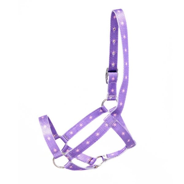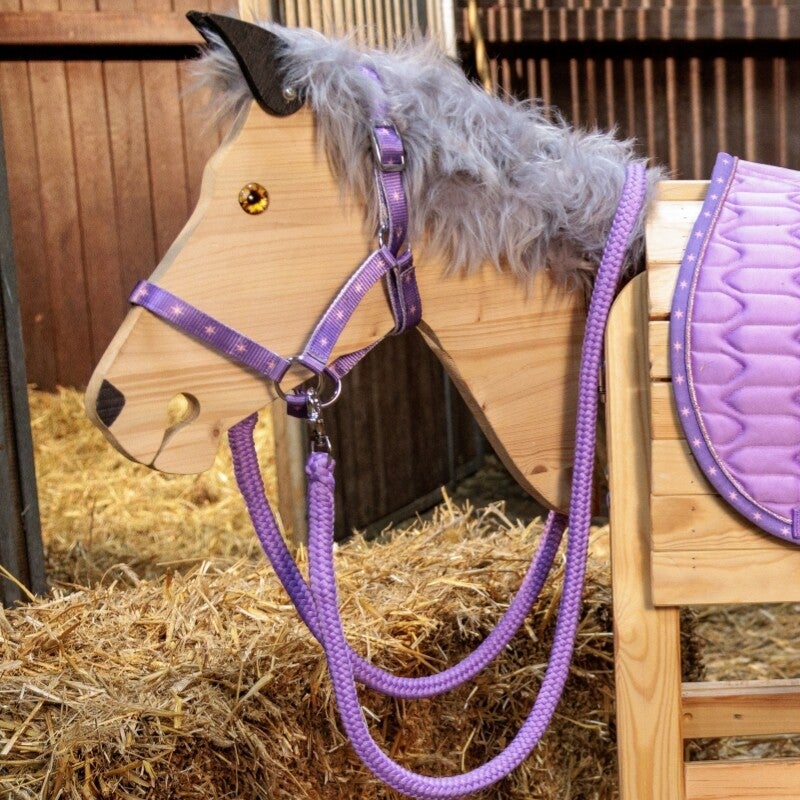 Le licol est fait de nylon durable et est livré avec des rênes assorties en violet qui peuvent être facilement attachées avec des mousquetons pratiques.