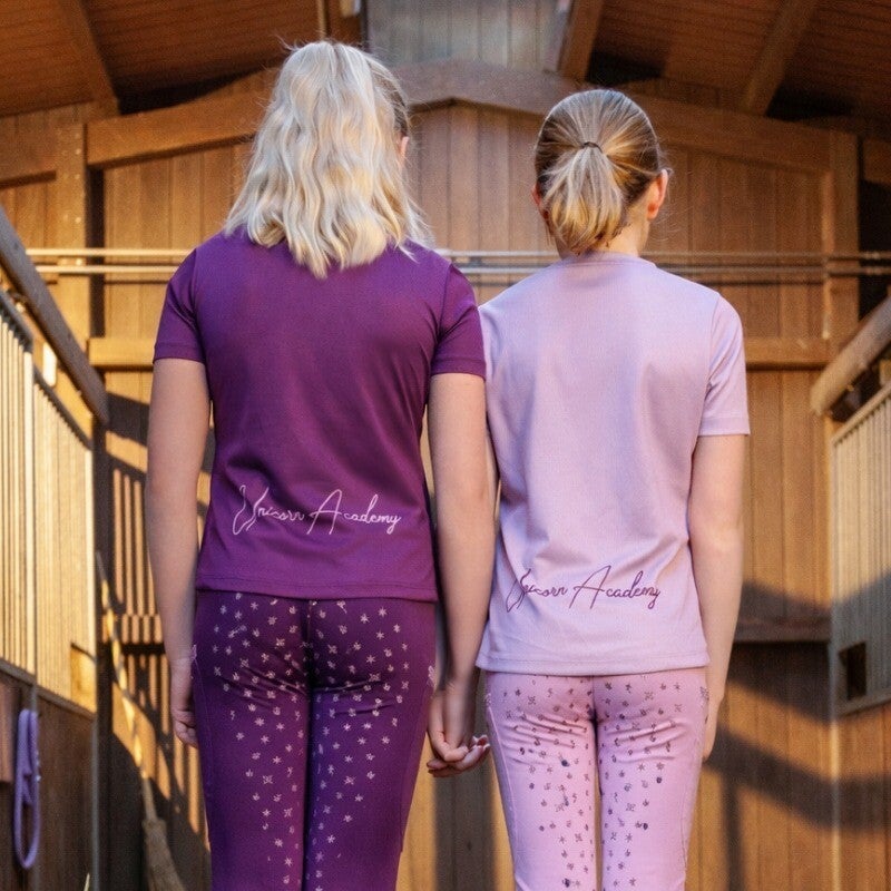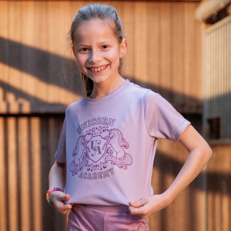 Ce t-shirt pour enfants porte le blason de l'Unicorn Academy, discrètement décoré de paillettes. Le matériau fonctionnel respirant assure une expérience de port confortable. Il est parfait pour les écuries ou les loisirs et peut être idéalement combiné avec nos leggings Unicorn.
